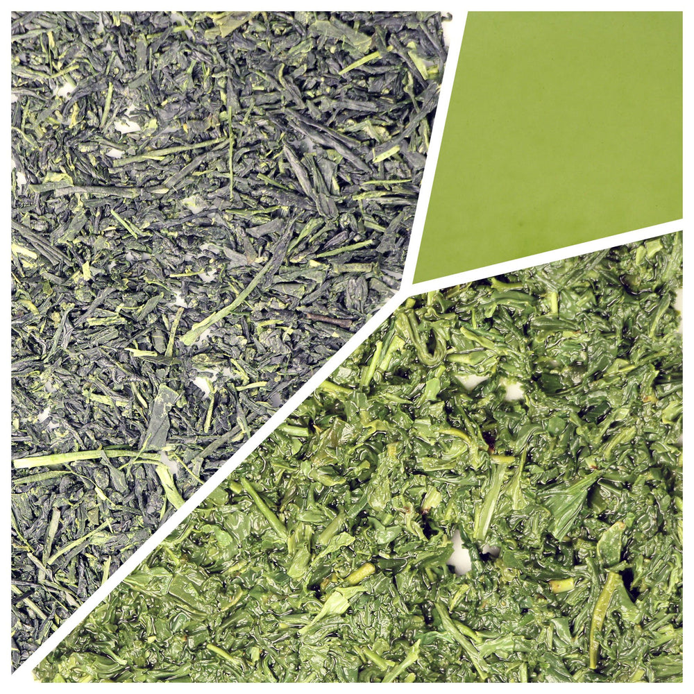 Gyokuro "Jade Dew" is the pinnacle of Japanese loose leaf green tea. During the annual spring harvest leaves are shaded for around 20 days to increase the potency of the plant. While shaded, the plant continues to produce chlorophyll, but the natural cycle of the sunlight bleaching the leaves is inhibited. The plant also pulls more nutrients from the soil as it is not able to convert the sunshine into energy for itself. The harvest consists of the collection of just the top 3 leaves, which are quickly cut and steamed. The flavor is richly creamy, sweet, and oceanic.