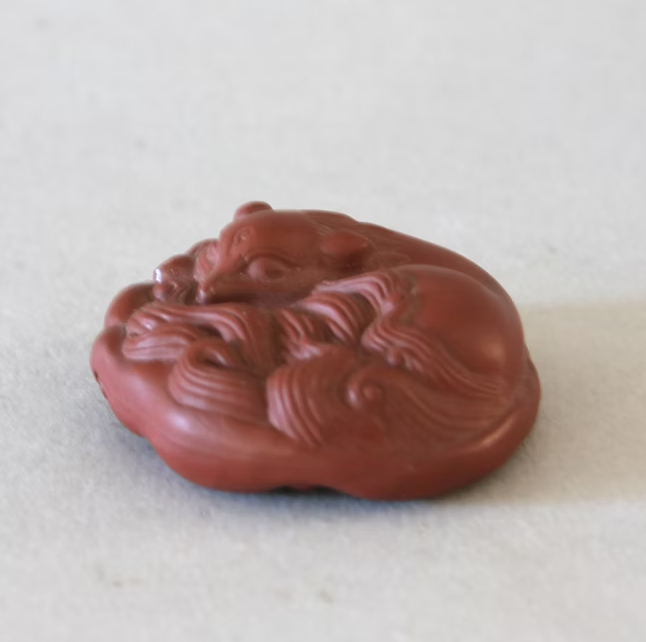 It's a tea lover's practice in China to nourish the tea pets by rinsing them with tea liquor. Pour regularly tea liquor on the pet. Over time clay tea pet will slowly develop a scent of the tea and a patina.